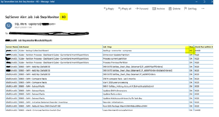 • IsMonitored field enables to monitor the job/step or not. This can be very handy as not all the jobs/steps need to be monitored.